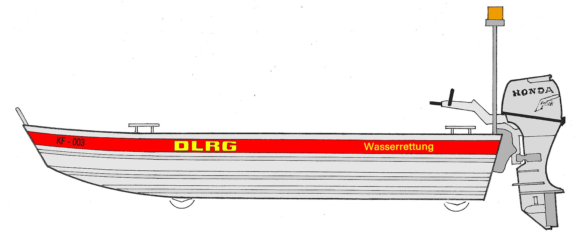 Des Weiteren ist das Boot mit 4 Gummirollen ausgerüste um, im Hochwassereinsatz, auch auf überspühlten Straßen geschoben werden zu können.