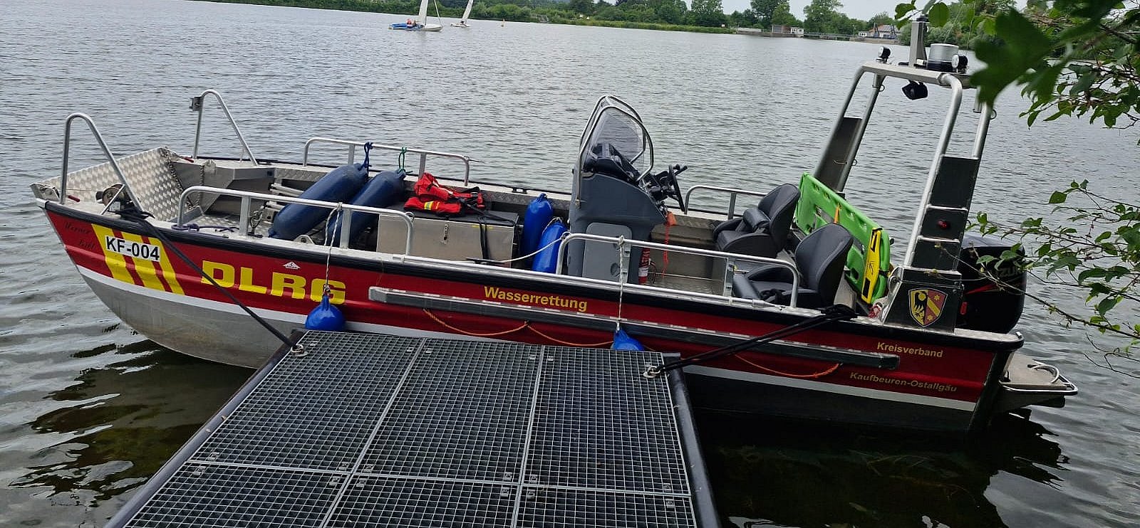 Unser Aluboot der Kategorie I mit dem Funkrufnamen "Pelikan Kaufbeuren 99/3" wird mit unserer Schnelleinsatzgruppe Wasserrettung I (SEG-WRI) zum Einsatz gebracht.