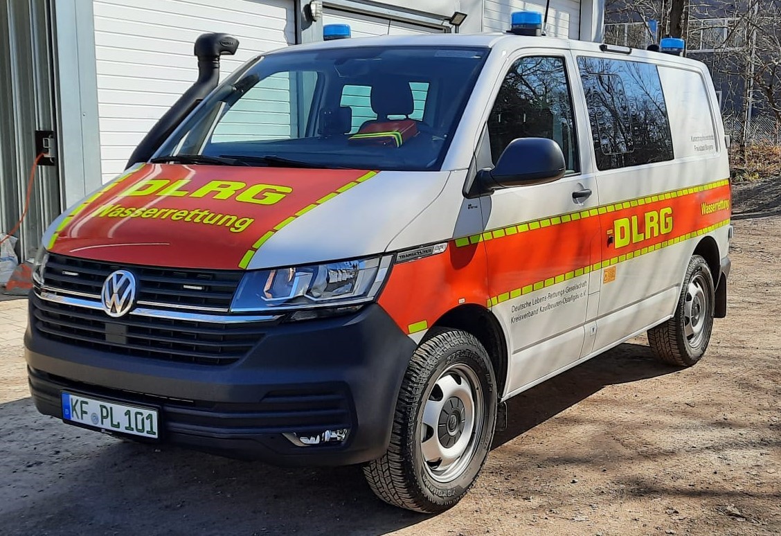 Das Fahrzeug PL KF 10/1 ist das Führungsfahrzeug des Wasserrettungszuges "Schwaben II" .